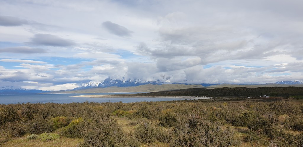 We set off early from Puerto Natales on Route 9, more poetically known as Ruta del Fin del Mundo, or road of the end of the world. It’s a couple of hours’ drive to the National Park entrance, the road becoming more potholed as the views become more spectacular. It’s windy and Maria has warned us to park front-end into it to stop the car being flipped in the strongest gusts and to take care when opening the doors as they can easily be blown off their hinges. The ‘Furious Fifties’, as those winds are known, are thankfully in less boisterous form today.