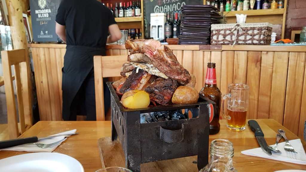 That evening we go to the popular Kawesqar restaurant and tuck into large plates of local scallops, king crab and patatas bravas. We drink the local Austral beer and my new favourite, the rich carmenère wine from the Central Valley up north. The guys next to us are laughing as they attack a mountainous pile of lamb, carved from the carcass spreadeagled over a wood fire in the window. It’s a convivial place and seems the perfect ending to the past few days.