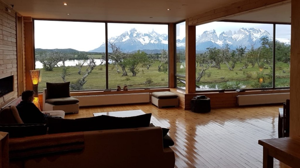 The Lodge feels upmarket and peaceful, with large bedrooms, log fires, and every room embracing the enormous panorama of the Torres in the distance.