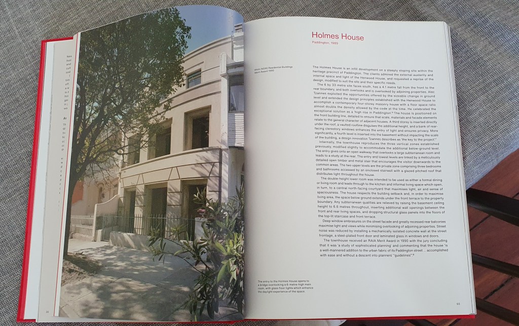 When I first arrived in Sydney in 1996, I would occasionally see a building or an addition to one and wonder who had done it. I was struck by the sense of quality, elegance, and understatement. Almost always the answer was Alec Tzannes. So I was delighted to actually spend time with him when I interviewed him for the archive of the State Library of NSW many years later (and those interviews form the basis of my chapter in this book on his young life – my only contribution). He became famous early in his career due to the Federation Pavilion in Sydney’s Centennial Park. It’s a solid little tempietto that packs a surprising punch, with an exuberantly coloured interior by Imants Tillers, and surprising elements, such as a channel of water tucked above the cornice that draws reflected light inside. His terraced houses of that period gave a svelte twist to the pretty but repetitive Victorian terraces of Paddington and Woollahra. He has worked mainly in Sydney, which means he really understands the places in which he has built. Today, his firm has completed many of Sydney’s major commercial buildings, including a couple with a structure made entirely of timber, as well of some grand harbourside houses. These projects are beautifully illustrated and accompanied by essays from notable academics, giving detail and insight on each, and exploring the language and symbols of architecture. Although it’s a lovely thing to dip into, it is a serious book, thoughtful and informative. All the work displays those qualities I first admired and a sense of fastidiousness, which is apparent even in the layout of the book itself. There is an abiding sense of integrity, not just in the use of solid materials rather than veneers or other facings but in working with the site, and respecting the surrounding buildings. It’s a beautiful monument to a life’s work (that is ongoing, I hasten to add).