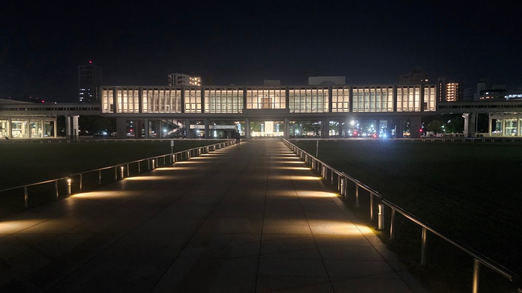 Hiroshima, for instance, despite its awful past, is an upbeat city set among beautiful hills and beside the tranquil Seto Inland Sea. Its Peace Park is a lovely space and the recent refurbishment of Kenzo Tange’s Peace Museum makes it clear what an elegant and respectful building it is, especially as it was designed just a few years after the devastation of the city. At night, especially, it is like a paper lantern in the park. A building in repose, as Australian architect Robin Boyd put it, but never asleep.
