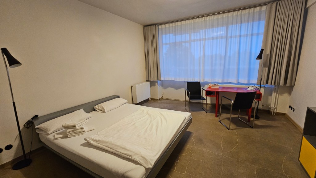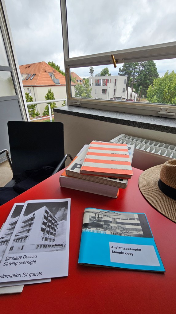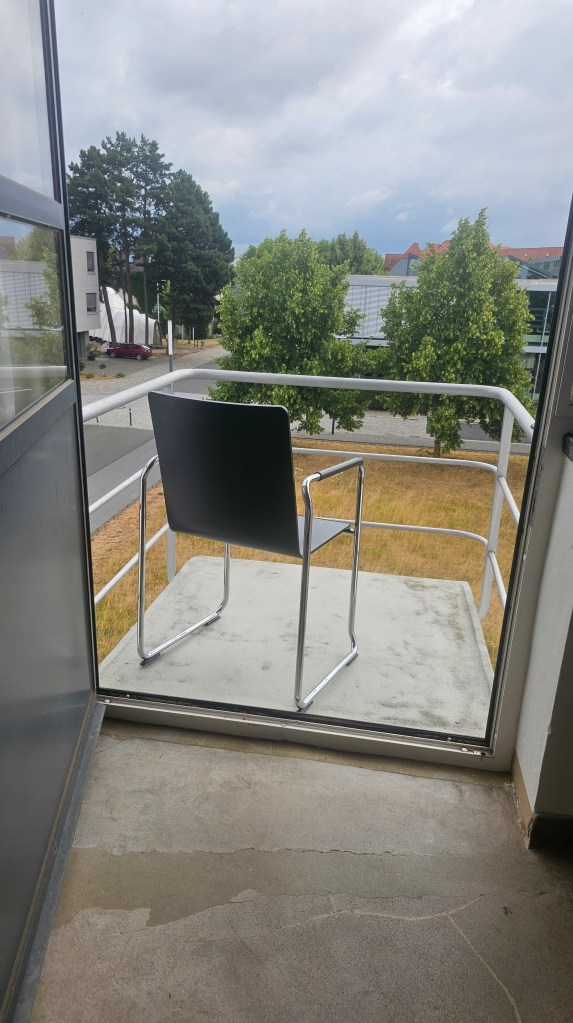The room was spacious with a polished concrete floor, a large desk, and big windows that let in lots of light. The little balcony was big enough to hold a chair and I sat there for a while, simply basking in the pleasure of being there on a warm evening. I could easily imagine the Bauhaus students larking about along the corridor. I was in a hallowed space, and I slept very well.