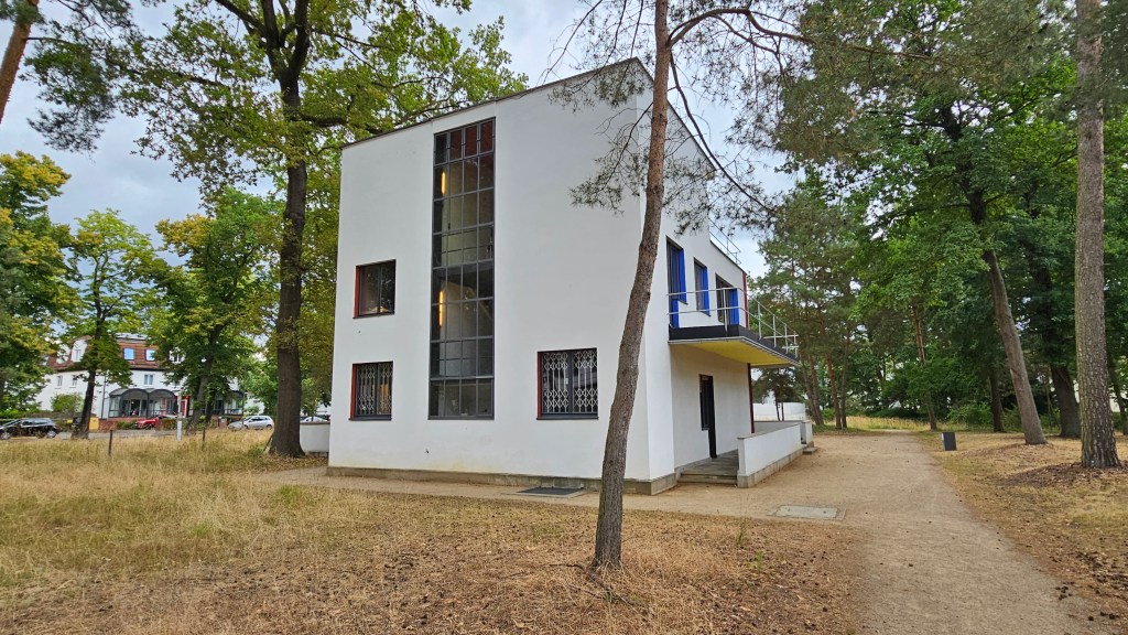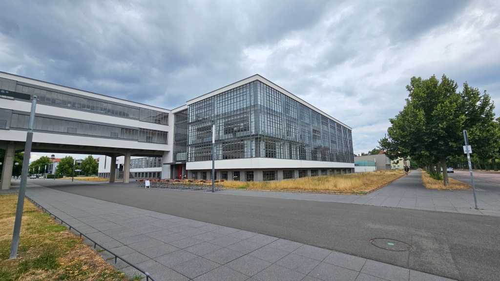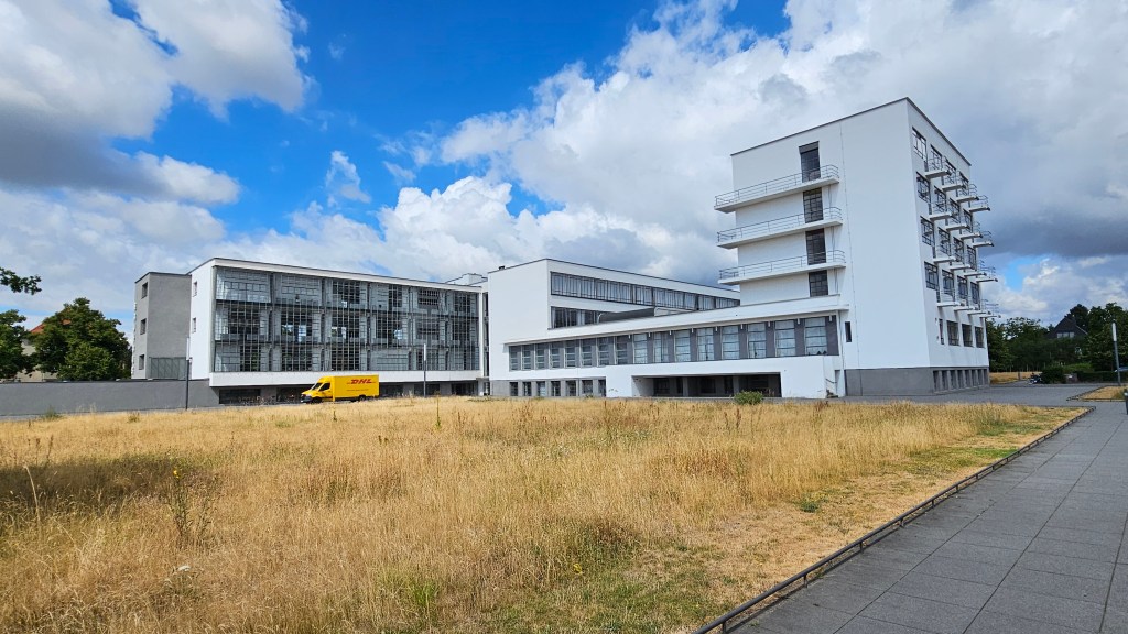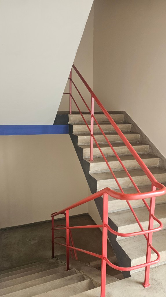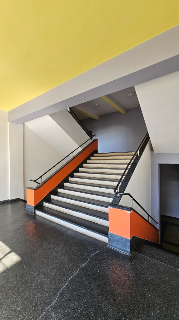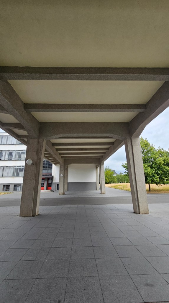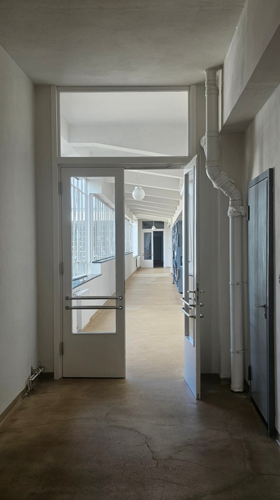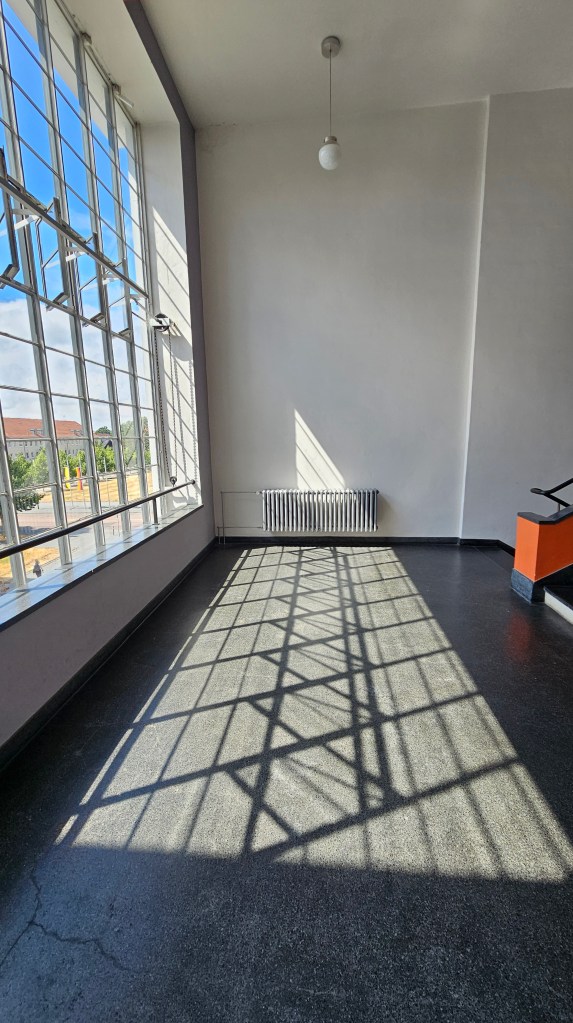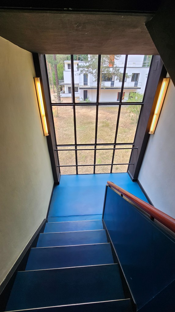 It’s filled with work by leading architects, including Le Corbusier, one of whose houses is now the museum. Gropius had also designed a house but it was destroyed in WW2. The only Gropius building I’d ever seen in person was a house he designed in Chelsea in 1935 and which had been horribly mutilated, covered with black tiles, the windows changed. The Bauhaus had also been submitted to some terrible changes over time but thankfully, from the 1990s onward, it was properly restored. And now here I was, standing before it.