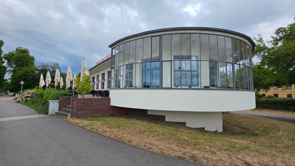 We had lunch in the Kornhaus restaurant on the river that was designed by Carl Fieger in 1929, who had been Gropius’s draughtsman since 1921. It has Art Deco glamour in the swooshing curve of his restaurant windows.
