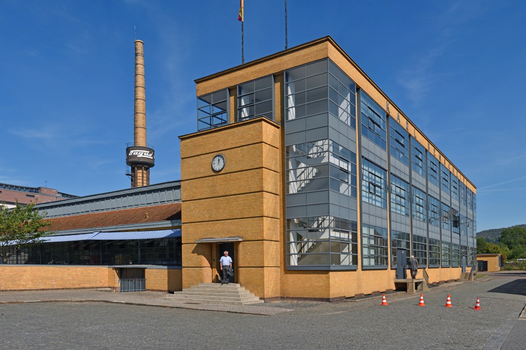 The Bauhaus building at Dessau has long occupied a special place in my heart, sentimental though it is. From day one at university, when we pondered crosscurrents between music and art, to my Finals three years later, the Bauhaus and its people kept popping up. Many of my friends were enthralled by Dada, Constructivism and Surrealism but it was the architecture of the early 20th century that really grabbed me. I was fascinated by Le Corbusier’s concrete-framed houses, by Mies van der Rohe’s glass towers, and Walter Gropius’s astonishing factories with their floating staircases. The Bauhaus building brought together many of those elements, which is perhaps unsurprising, given that Corb, Mies, and Gropius all worked, briefly, for the same man, Peter Behrens, in Berlin. It was Behrens who more or less invented branding, famously designing everything for electrical company AEG, from its factory buildings to its letterhead. He was a huge influence on Gropius in particular, supporting the idea of giving equal importance to every part of design. The term gesamtkunstwerk or total work, summed it up, and the Bauhaus was all about creating it.
